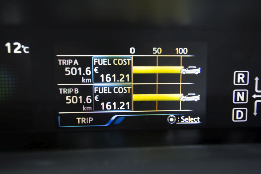29/5/2017, 10:03 מסך המידע המרכזי בפריוס מציג מספר גרפים שונים המלמדים על צריכת הדלק של המכונית. אחד מהם מאפשר לצפות בעלות הדלק שנשרף מאז איפוס המונה האחרון. המערכת מאפשרת צפיה בנתונים ביורו או בדולר בלבד, אז אנחנו החלטנו "לעבוד" עליה - ולהגדיר את המחיר העדכני בשקלים, כאילו הוא ביורו. כלומר - 161 שקלים נשרפו בנסיעה של כ-500 קילומטרים בתמונה המצורפת. האמת היא שהתצוגה הזו מקורית, אבל אנחנו כמעט ולא משתמשים בה.