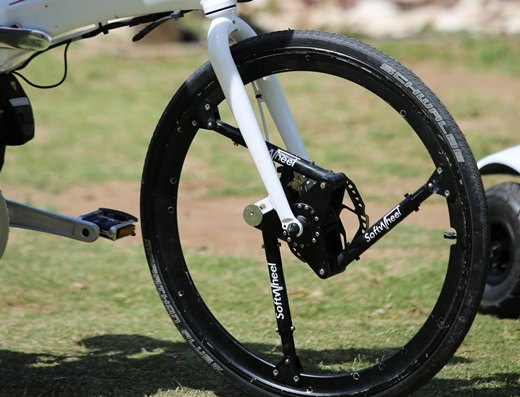 אחד מהפיתוחים שהוצגו בכנס: בולם זעזוזעים מובנה בתוך הגלגל / צילום: גלעד קוולרצ'יקלקראת סוף החודש החולף (מאי) נערך בקיסריה באירוע המרכזי השנתי השני של אקומושן. לקראת האירוע נערכה תחרות בין סטודנטים ודוקטורנטים שבמסגרתה נקראו לפתח פתרונות שיפחיתו את השימוש בנפט לתחבורה. אל האירוע הגיעו עשרת הפרויקטים שנבחרו כטובים ביותר ובהם דוקטורנטית מאריאל שפיתחה מערכת להנעה בתאי דלק באמצעות הסבה של שתן למימן, סטודנטית ישראלית בברלין שפיתחה מערכת לשינוע יעיל יותר של סחורות בנתיבי תחבורה ציבורית ושני דוקטורנטים מבר-אילן שיציגו שמשה אחורית חלופית להפחתת התנגדות הרוח ולחיסכון בדלק.