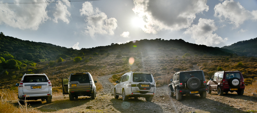 על השבילים ובין ההרים, הסוזוקי הקטן מרגיש בבית. יש לו בסיס גלגלים קצרצר וזוויות מרכב מעולות, שמונעות ממנו להסתבך במקומות שבהם היעדר האלקטרוניקה עלול להפריע. הוא יושב על שלדת סולם קשיחה ומצויד בהילוך כוח, ובעיקר הוא מחבר את הנהג באופן בלתי אמצעי לקרקע, והוא הדבר הקרוב ביותר שחווינו לטיול על גבי חמור. או סתם ברגל. יחד עם זאת, חוסר הנוחות והקופצניות של הסוזוקי ג'ימני בלטו מאוד לרעה, בטח בהשוואה לטויוטה לנדקרוזר והלנדרובר דיסקברי ואפילו בהשוואה לשניים האחרים. נסיעת שטח ארוכה בג'ימני נועדה ככל הנראה לגילאים יותר צעירים מהאחרים.